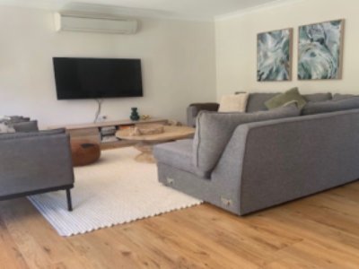 This lovely property has just had all new furniture and carpet throughout. It has been styled with all modern and comfortable furnishings. The spacious kitchen has everything you need to create a masterpiece, or you can just wander down the road to the local shops or club. There is a new BBQ and outdoor setting for you to enjoy in a lovely large backyard. With only a short walk or ride to either beaches you will have endless hours out exploring the area before you head back to relax in air-conditioned comfort or in the peaceful backyard. Being Pet Friendly means you can bring the whole family. Please note pets are not permitted indoors (laundry area only can be used when raining).