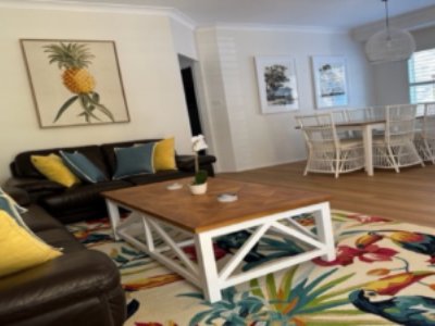DescriptionThis large, beautifull and newly renovated, modern four-bedroom home with ensuite is ideal for a large family and is located on Margaret St in the Magic Square, with only a short stroll to both beaches, cafés, local shops, golf club and playgrounds. Features include WiFi access, ceiling fans throughout, a formal lounge and dining area as well as rumpus area, home office, SMART Samsung TV, gas BBQ, outdoor setting, a double lock-up garage with internal access, and room to park the boat on the driveway! Secure your holiday here today! *This is not a serviced property. You will need to bring your own linen (sheets, pillow slips, bath towels, bath mats, tea-towels). *Key pick up from Hawks Nest First National Real Estate on arrival