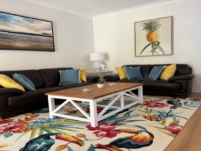 This large, modern four-bedroom home with ensuite is ideal for a large family and is located on Margaaret St in the Magic Square, with only a short stroll to both beaches, cafés, local shops, golf club and playgrounds. Features include WiFi access, ceiling fans throughout, flat screen TV, MW, DW, WM, D, TV, DVD, gas BBQ, outdoor setting, a double lock-up garage, and room to park the boat on the driveway! Please phone to secure your holiday today!