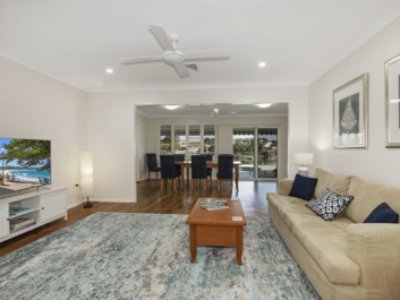 Features· Living space features a flat-screen Smart TV, comfortable lounge, WIFI access · Spacious kitchen with dishwasher, microwave, Nespresso coffee machine · Outdoor entertaining area with in-ground pool, gas weber BBQ, outdoor setting for 6 · Ducted air-conditioning & ceiling fans, dining room seats 8, double carport · Private boat ramp/slip & pontoon; perfect for fishing or swimming · Only 5 min drive to popular tourist spots; Ettalong Beach, Umina & Woy Woy · Main bathroom with bath, shower. Full internal laundry & combined second bathroom